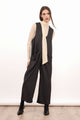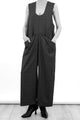 - Sleeveless jumpsuit with a scoop neckline and wide-leg pants.